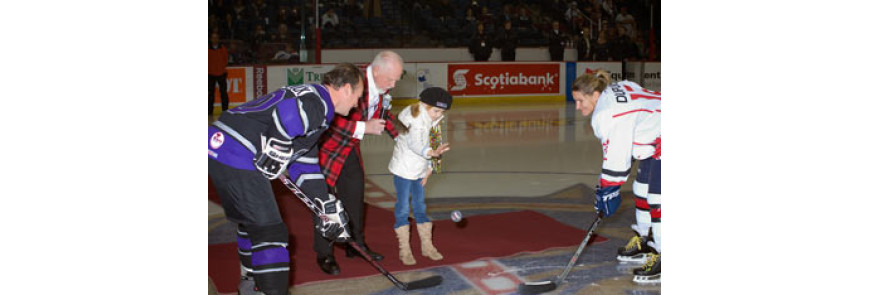CWHL All-Stars suited up in Kobe’s all new K3G Jerseys and played against the NHL Alumni team which included Ron Maclean. Don Cherry was on hand for the ceremonial puck drop.