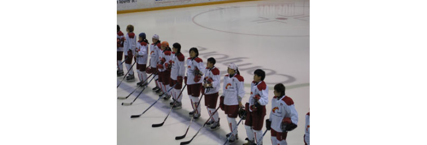 The elite group of Chinese players faced off in a friendly exhibition match against the Burlington Barracudas Senior AAA Team on Sunday, October 25th 2009 at the Appleby Ice Center in Burlington, Ontario. Kobe was on hand to greet the players and handed out gifts to each team.