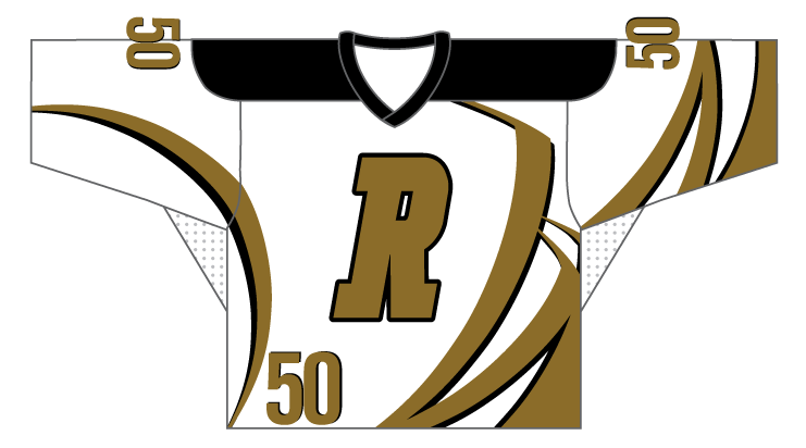 Straight Bottom, One Colour Self Fabric V-Neck Collar, Single Shoulders/Elbows, Mesh Gussets, K3G or 6100 Fabric (Adult S – 2XL / Youth S – XL / 3XL, Goalie Cut)