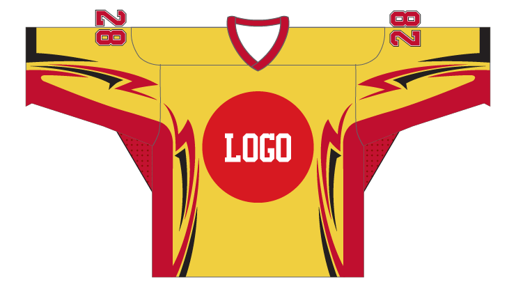 Straight Bottom, One Colour Self Fabric V-Neck Collar, Single Shoulders/Elbows, Mesh Gussets, K3G or 6100 Fabric (Adult S – 2XL / Youth S – XL / 3XL, Goalie Cut)