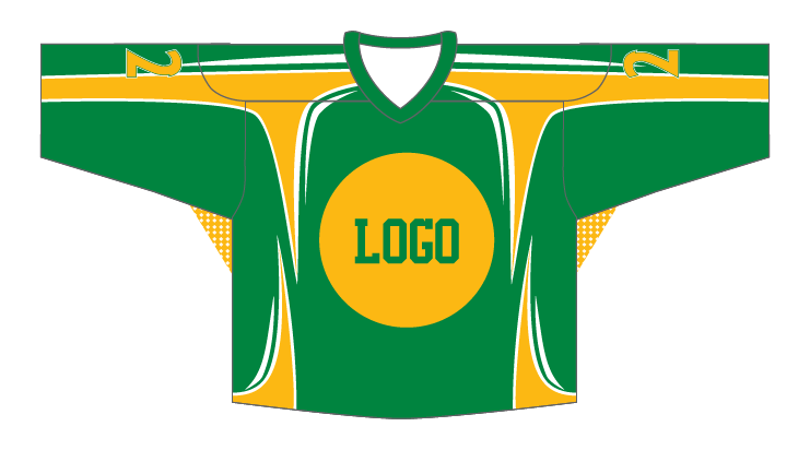 Straight Bottom, One Colour Self Fabric V-Neck Collar, Single Shoulders/Elbows, Mesh Gussets, K3G or 6100 Fabric (Adult S – 2XL / Youth S – XL / 3XL, Goalie Cut)